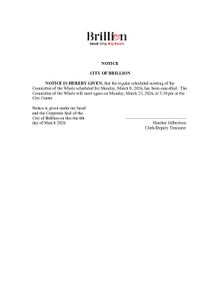 CANCELLED - Committee of the Whole Meeting, Monday, March 9, 2026 at 5:30pm PDF Download "2026 March 9 COW - Cancelled.pdf"