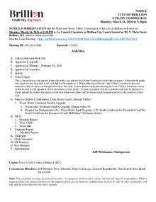 Utility Commission Meeting, Monday, March 23, 2026 at 4:30pm PDF Download "B. 2026 March 16 Utility Commission Agenda.pdf"