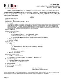Park & Recreation Commission Meeting, Thursday, March 5, 2026 at 4:00pm PDF Download "Agenda March 5, 2026.pdf"
