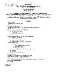 Brillion Housing Authority Meeting, Monday, March 23, 2026 at 10:30am PDF Download "3.2026 March Agenda.pdf"