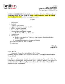 Tourism Committee Meeting, Tuesday, March 24, 2026 at 6:00pm PDF Download "2026 March 17 Tourism Agenda Meeting.pdf"