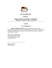 CANCELLED - RDA Meeting, Thursday, March 12, 2026 at 5:30pm PDF Download "2026 March 12 Notice RDA Meeting Cancelled.pdf"