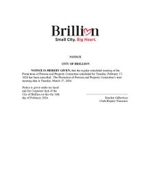 CANCELLED - Protection of Persons and Property Committee Meeting, Tuesday, February 17, 2026 at 5:30pm PDF Download "2026 February 17 Protections of Person and Property - Cancelled.pdf"