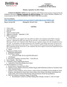 Committee of the Whole Meeting, Monday, September 22, 2025 at 5:30pm. PDF Download "4. 2025 September 22 Committee of the Whole Agenda.pdf"
