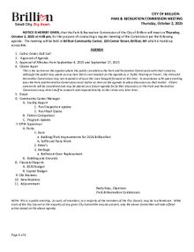 Park and Recreation Commission Meeting, Thursday, October 2, 2025 at 4:00pm. PDF Download "2. 2025 October 2 Agenda.pdf"
