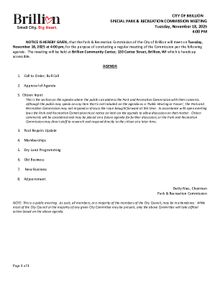 Special Park & Recreation Commission Meeting, Tuesday, November 18, 2025 at 4:00pm PDF Download "2025 November 18 Special Agenda.pdf"