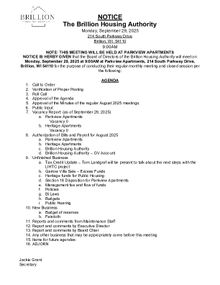 Brillion Housing Authority Meeting, Monday, September 29, 2025 at 9:00am. PDF Download "9.2025 September Agenda.pdf"
