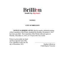 CANCELLED - Committee of the Whole Meeting, Monday, December 22, 2025 at 5:30pm PDF Download "2025 December 8 Committee of the Whole Canceled.pdf"