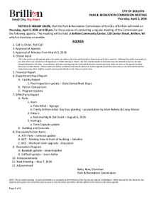 Park & Recreation Commission Meeting, Thursday, April 2, 2026 at 4:00pm PDF Download "Agenda April 2, 2026.pdf"