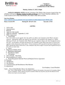 Committee of the Whole Meeting, Monday, October 13 2025 at 5:30pm. PDF Download "4. 2025 October 13 Committee of the Whole Agenda.pdf"