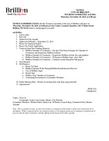 Tourism Committee Meeting, Thursday, November 20, 2025 at 6:00pm PDF Download "2025 November 13 Tourism Agenda Meeting.pdf"