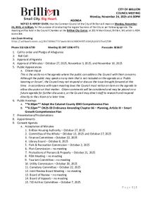 Special Council Meeting, Monday, November 10, 2025 at 6:00pm. PDF Download "3. 2025 November 10 Special Council Meeting Agenda.pdf"