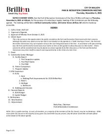 Park & Recreation Commission Meeting, Thursday, November 6, 2025 at 4:00pm. PDF Download "2. 2025 November 6 Agenda.pdf"