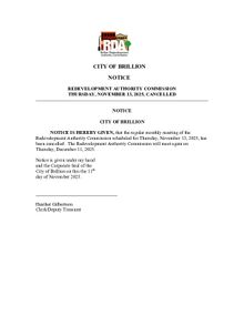 CANCELLED - RDA Meeting, Thursday, November 13, 2025 at 5:30pm. PDF Download "Notice RDA Meeting November 13, 2025 Cancelled.pdf"