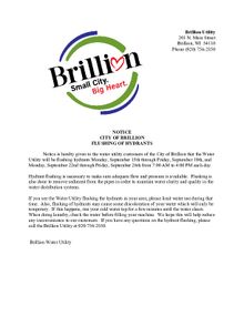 Billing InformationWater and Sewer Utilities are billed quarterly. Public Fire Protection Service Charges are also included on the bill. Cash, checks or money orders are accepted. Credit and debit cards are also accepted for a fee. Make checks payable to the Brillion Utility Commission, 201 N. Main Street, Brillion, WI 54110.